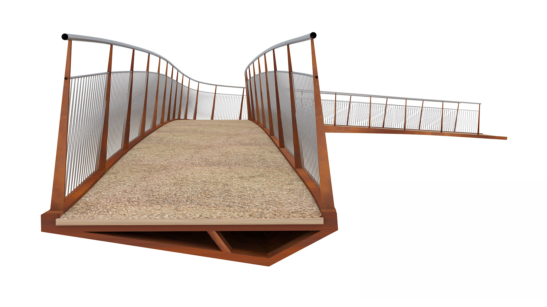 We worked collaboratively to create a solution that was not only structurally necessary but also visually sensitive to its picturesque setting. A closed steel torsion box follows the optimum structural profile of the deck, creating a curved and tapered underside. By expressing the structural action through form, the design reduces excess material and keeps the bridge depth to a minimum.
